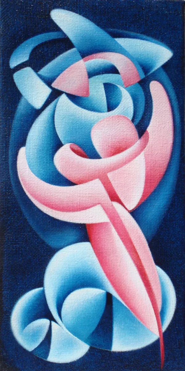 Un'esplosione di colori e forme che cattura l'attenzione e lascia senza fiato. L'artista ha creato un mondo di fantasia utilizzando linee geometriche curve che si intrecciano e si intersecano, creando volumi impossibili e prospettive sconvolgenti. I colori sono vivaci e vibranti, creando un senso di movimento ed energia. L'opera è un invito ad esplorare il mondo dell'immaginazione e a liberarsi dai vincoli della realtà.