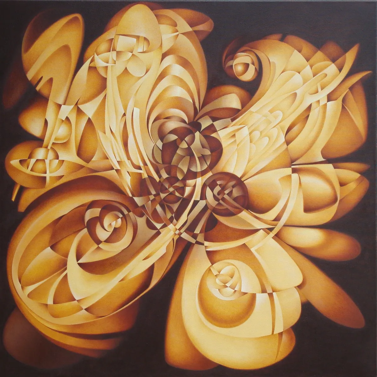 "Efflorescenza Interiore" è un autoritratto astratto che cattura l'essenza dello stile pittorico unico e inconfondibile dell'artista. L'opera è composta da una serie di elementi geometrici sovrapposti e intersecati che creano un'atmosfera interiore profonda e personale. Il titolo "Efflorescenza Interiore" evoca l'idea di una fioritura, di una crescita dall'interno, che riflette il processo creativo dell'artista.