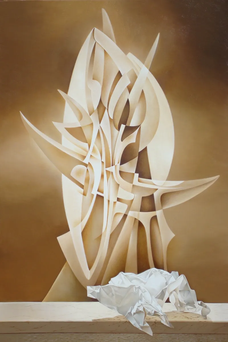 Il foglio stropicciato, testimone silente, della lotta e del travaglio, del dubbio e del muto. Ma ora giace sconfitto, ai piedi del gigante, simbolo di vittoria, di un nuovo gigante. Un'opera che parla, senza bisogno di parole, che racconta storie, di sogni e di fole. Un invito a guardare oltre, a non fermarsi mai, a trasformare l'impossibile, in un "si, ce la fai!".