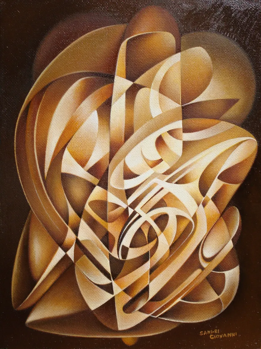 L'opera d'arte astratta in questione presenta una composizione dinamica e complessa, caratterizzata da un gioco sapiente di luci e ombre su uno sfondo scuro. L'uso del colore è essenziale per creare l'impatto visivo dell'opera. Il contrasto tra il giallo brillante del fiore e il fondo scuro crea un senso di vivacità e di contrasto, mentre le sfumature di marroncino che circondano il fiore aggiungono profondità e dimensione alla composizione. Le forme geometriche utilizzate dall'artista sono semplici ma efficaci. I petali del fiore sono resi attraverso triangoli e trapezi, mentre lo stelo è rappresentato da una linea sottile e sinuosa. La ripetizione di queste forme crea un senso di ritmo e di movimento, mentre la loro disposizione irregolare conferisce all'opera un senso di spontaneità e di freschezza. L'opera è ricca di simbolismi. Il fiore giallo, simbolo di vita e di gioia, emerge dal buio, suggerendo una vittoria della luce sulle tenebre. La sua forma complessa e articolata potrebbe rappresentare la complessità della vita, nelle sue svariate sfaccettature. In definitiva, "Emergenza dal buio" è un'opera d'arte astratta ricca di significato e di suggestioni. La sua composizione dinamica, il suo uso sapiente del colore e le sue forme geometriche semplici ma efficaci la rendono un'opera affascinante e coinvolgente, che invita lo spettatore a riflettere sulla natura della vita, sulla bellezza del mondo naturale e sulla complessità dell'esistenza.