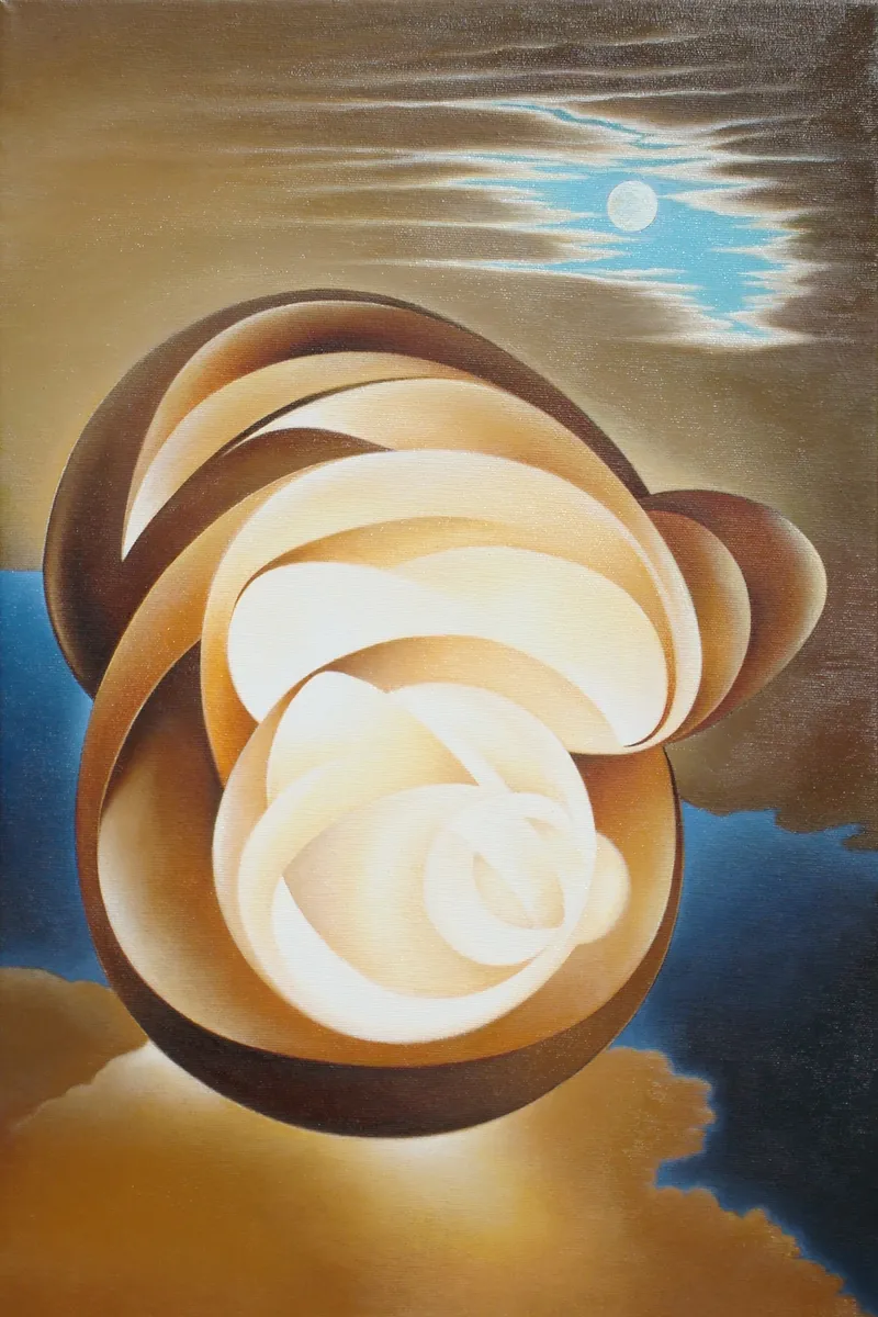 L'artista ha utilizzato le forme e i colori in modo efficace per creare un senso di luce e di speranza. La forma luminosa emerge dal fondo nero, creando un contrasto che evoca un senso di positività e di possibilità. I colori sono vibranti e caldi, e contribuiscono a creare un'atmosfera rassicurante. Opera perfettamente conservata, olio su faesite cm. 30x40 , con certificato di autentica e riconoscimento del pittore. Spese di spedizione a carico del venditore in tutta Italia.