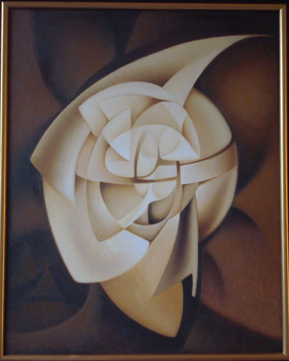 Quest’opera è una raffigurazione astratta e creativa delle Tre Cime di Lavaredo, le famose montagne delle Dolomiti. L’artista ha usato forme curve e ondeggianti che si intrecciano, dominate da tonalità di colore giallo, arancione e marrone chiaro. Queste forme richiamano le rocce, la terra, il sole e il calore, creando un contrasto con le montagne sullo sfondo, che sono rappresentate in modo più realistico, con dettagli e colori naturali. Il cielo è azzurro pallido, fornendo un contrasto delicato con le forme astratte in primo piano. L’immagine trasmette una sensazione di movimento e fluidità attraverso l’uso di linee curve e forme ondulate. L’artista ha voluto esprimere la sua visione personale e originale delle Tre Cime di Lavaredo, trasformando il paesaggio in un’opera d’arte astratta e suggestiva.