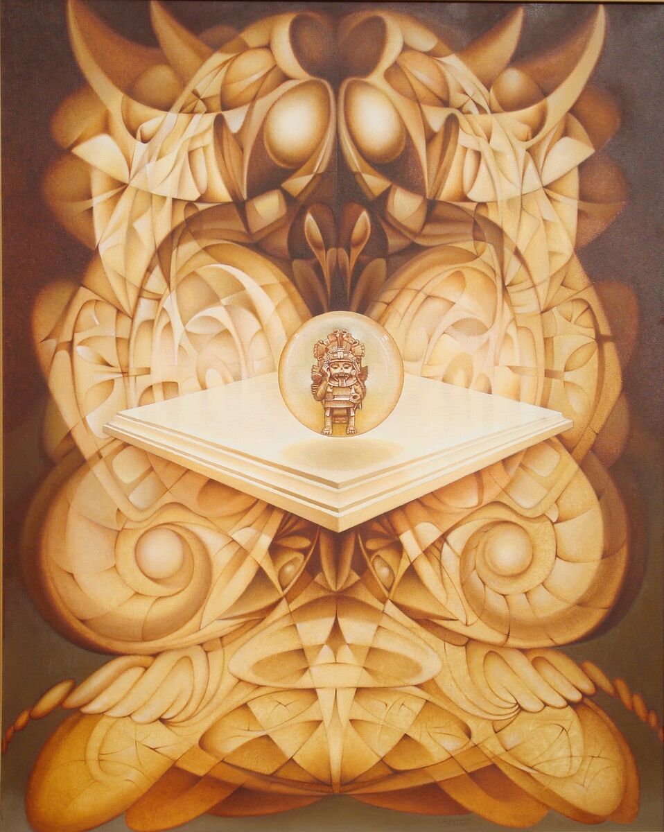 Al centro del dipinto una statuina Maya ha in mano un pennello e un barattolo di colore, è un pittore. L'opera è un'esplorazione del potenziale creativo dell'uomo. L'artista ha creato un mondo completamente nuovo usando solo le forme e i colori. Questo dimostra che l'uomo è capace di creare cose meravigliose anche quando non è vincolato dalla realtà.